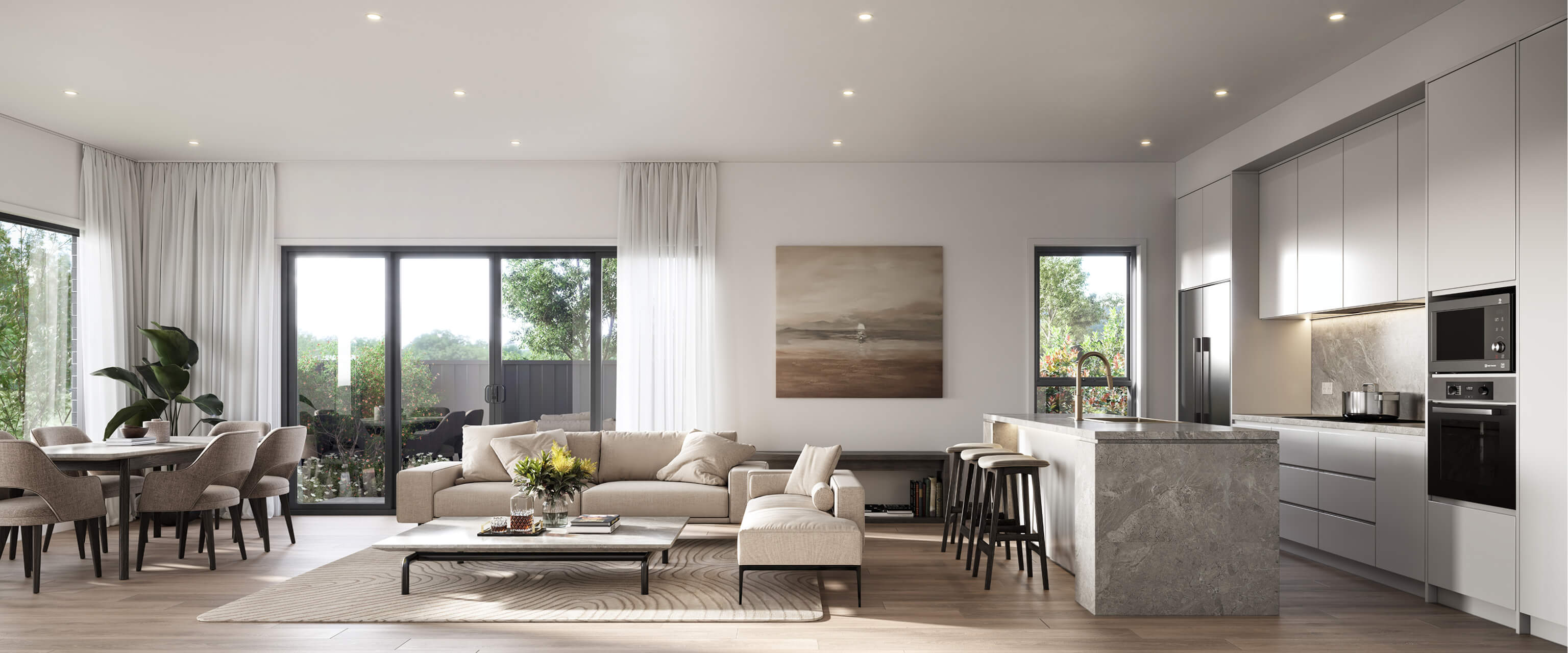 Taking advantage of the undulating topography, each home is thoughtfully positioned to frame scenic views, maximise natural light, and open onto private courtyards. The design emphasizes creating a seamless connection with nature, and fostering a deep connection with the outdoors.